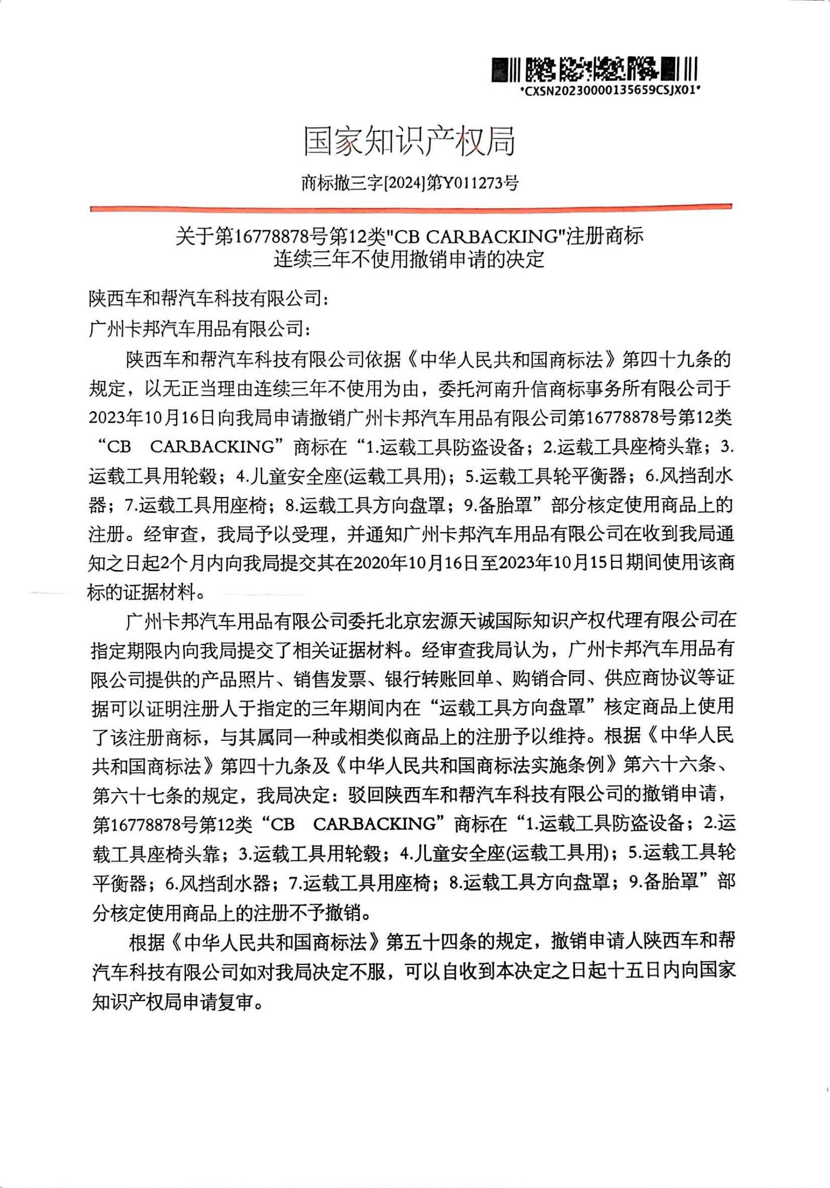 宏源天诚代理“CB CARBACKING”撤三答辩成功