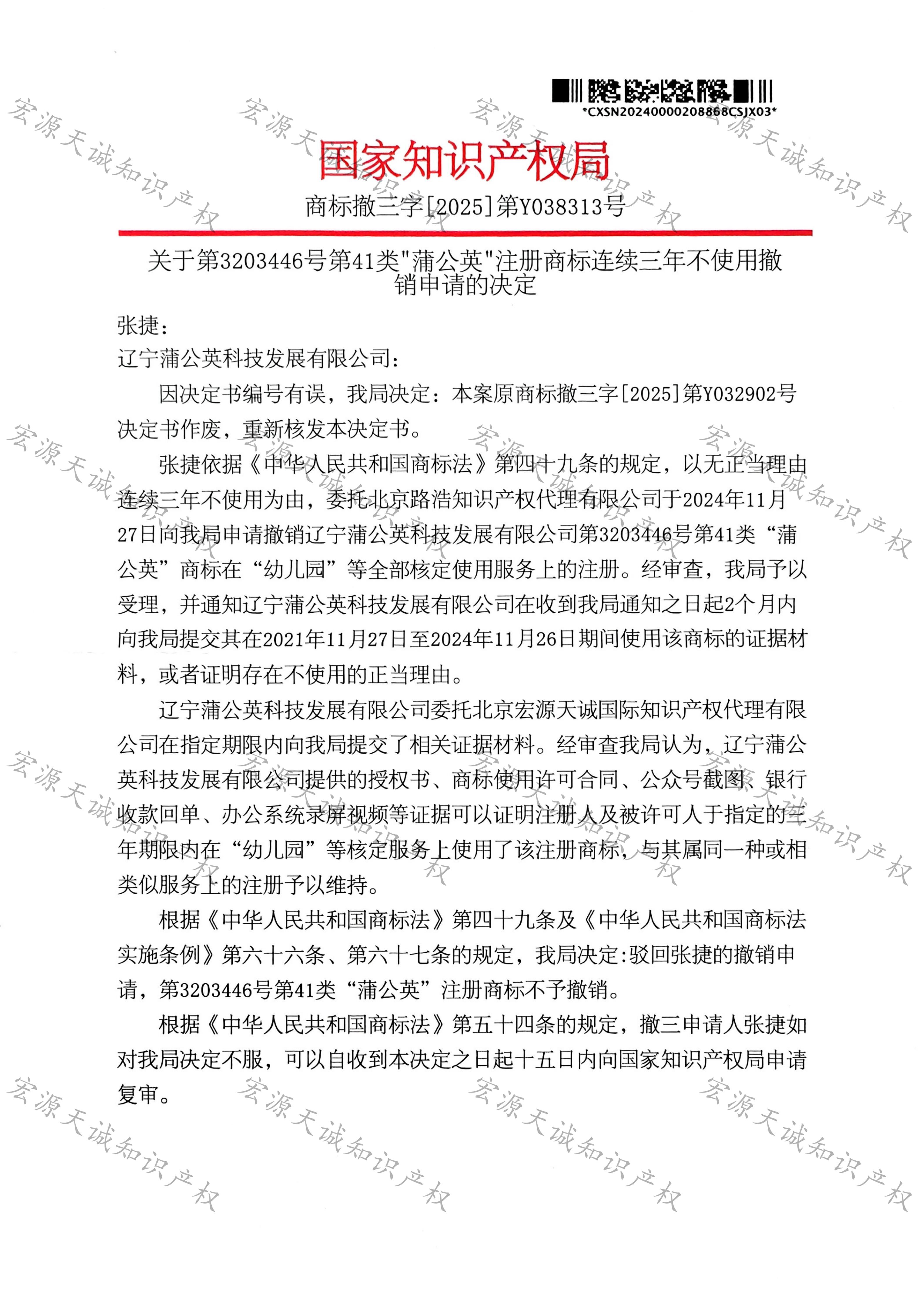 宏源天诚代理“蒲公英”商标撤三答辩成功