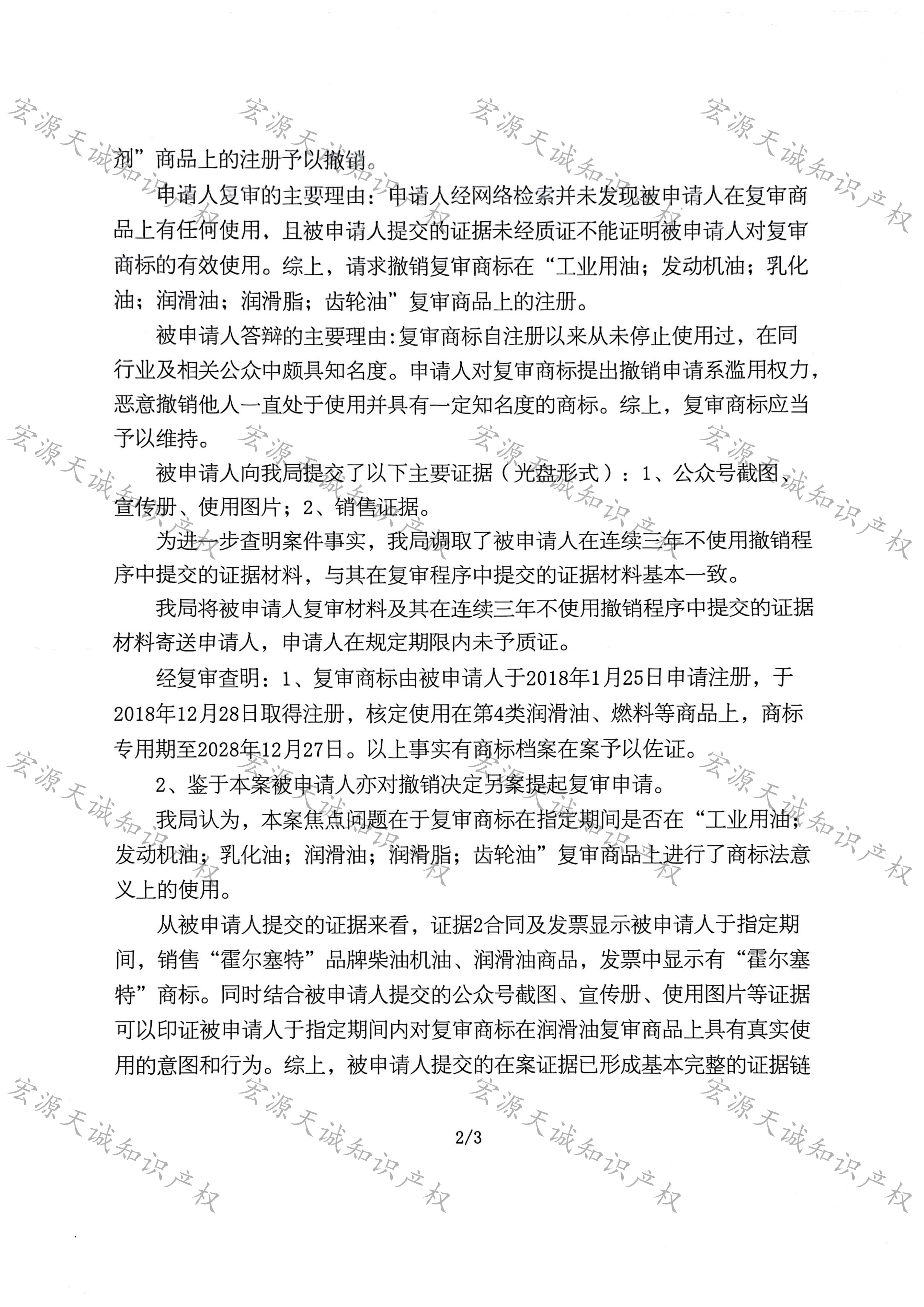 宏源天诚代理“霍尔塞特”商标撤销复审答辩成功