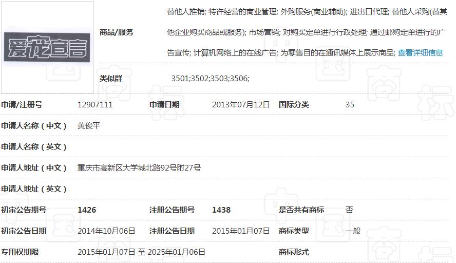 宏源天诚代理“爱宠宣言”商标撤三答辩成功
