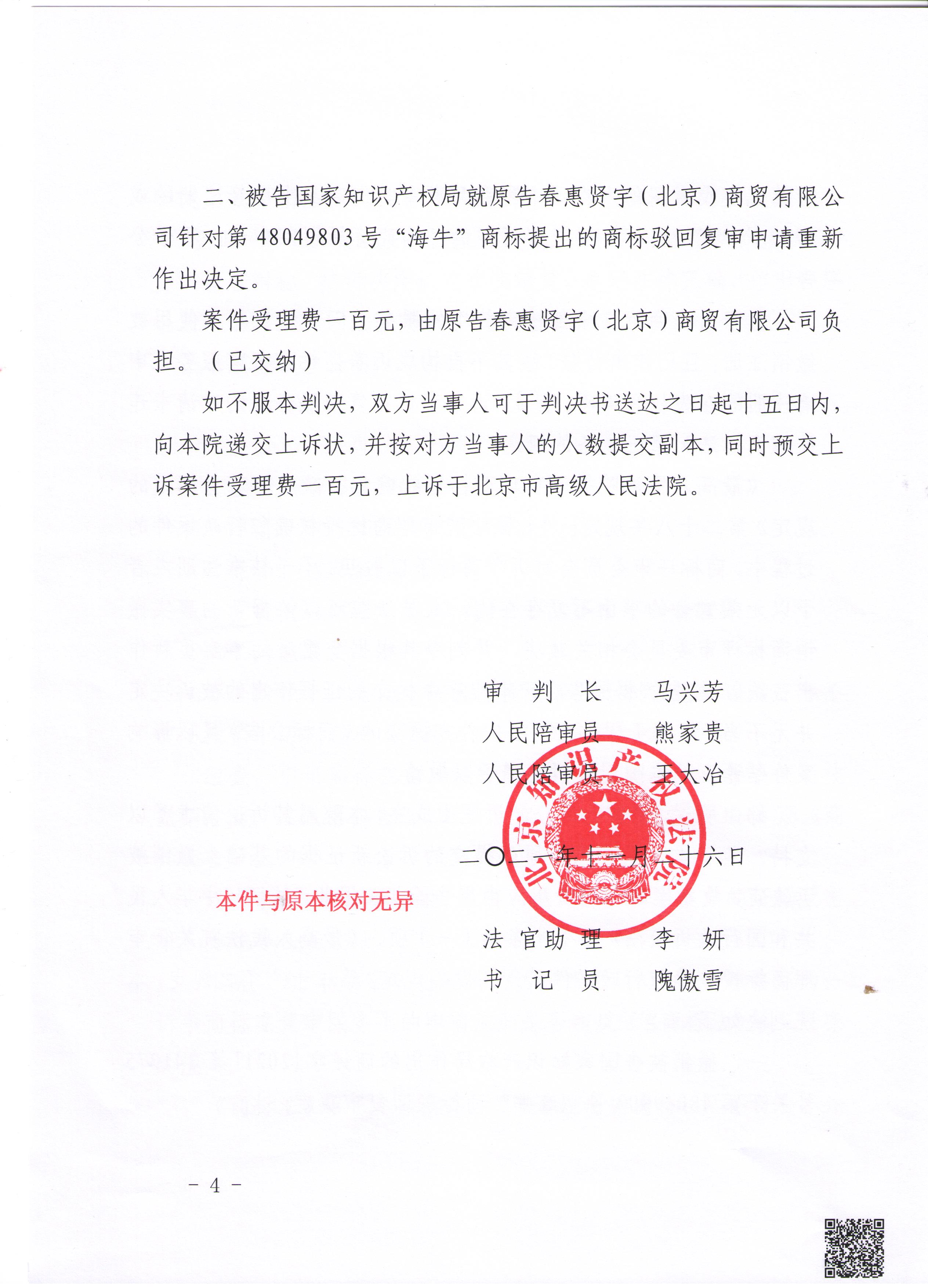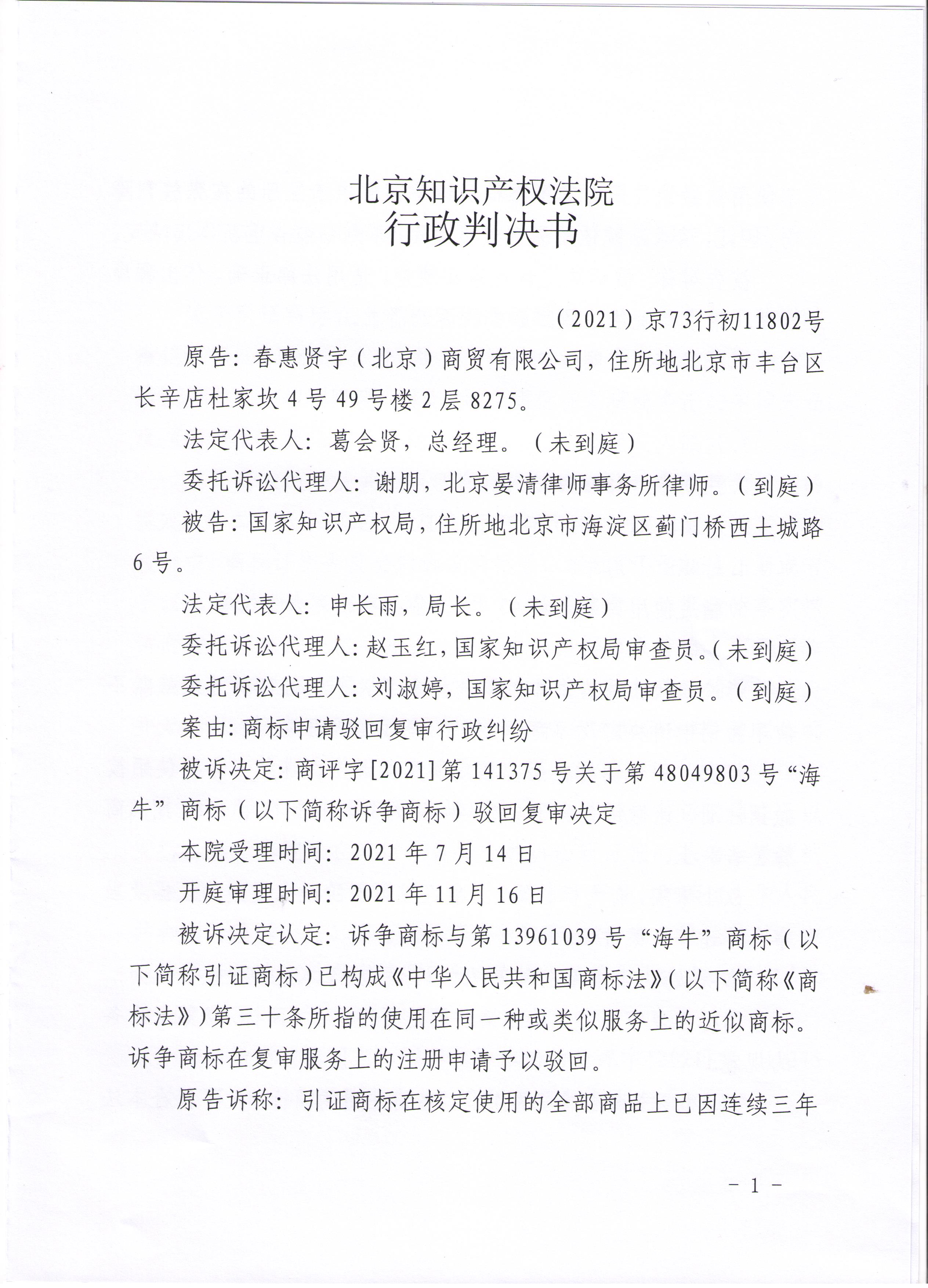宏源天诚代理“海牛 ”商标诉讼成功