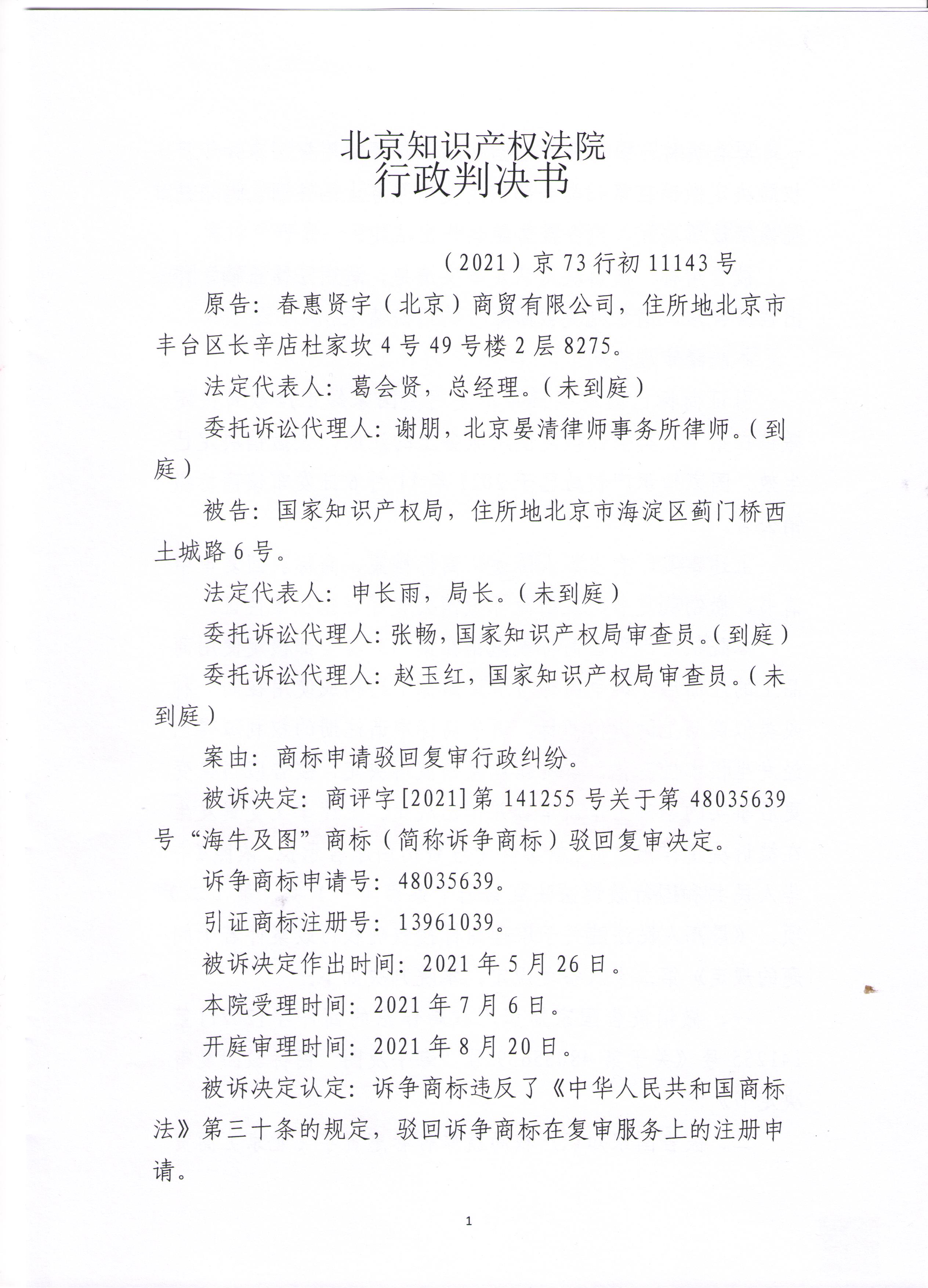 宏源天诚代理“海牛及图 ”商标诉讼成功