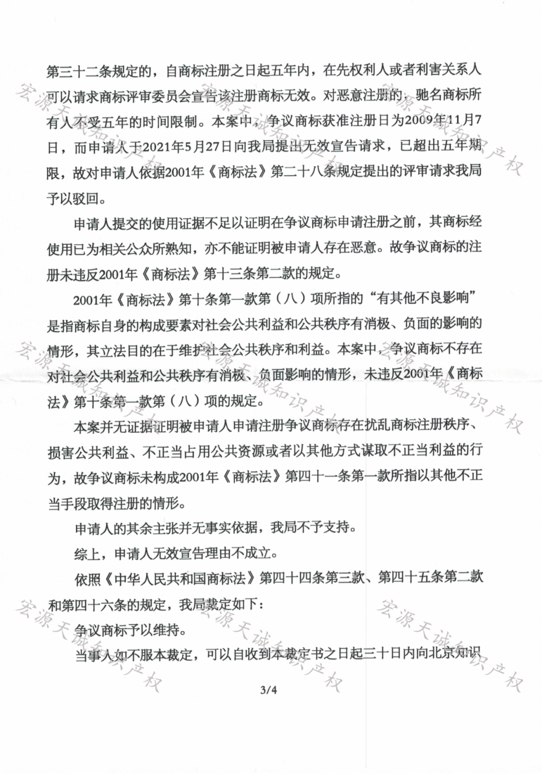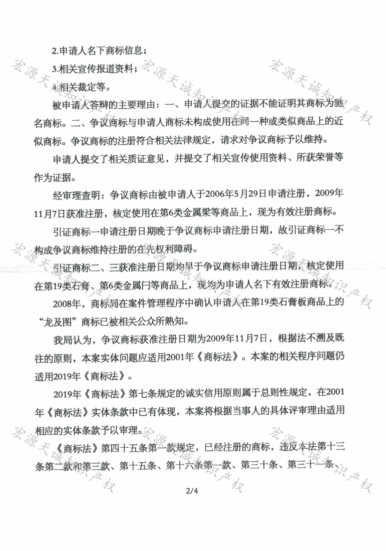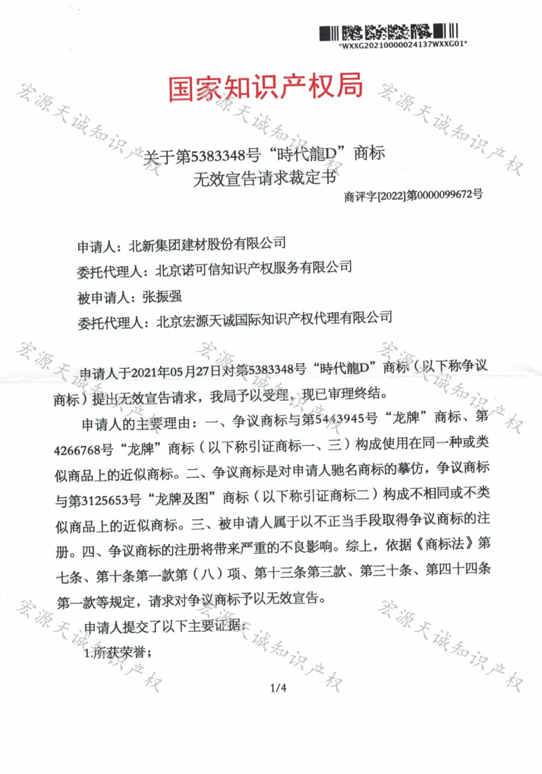 宏源天诚代理“时代龍D”商标无效答辩成功