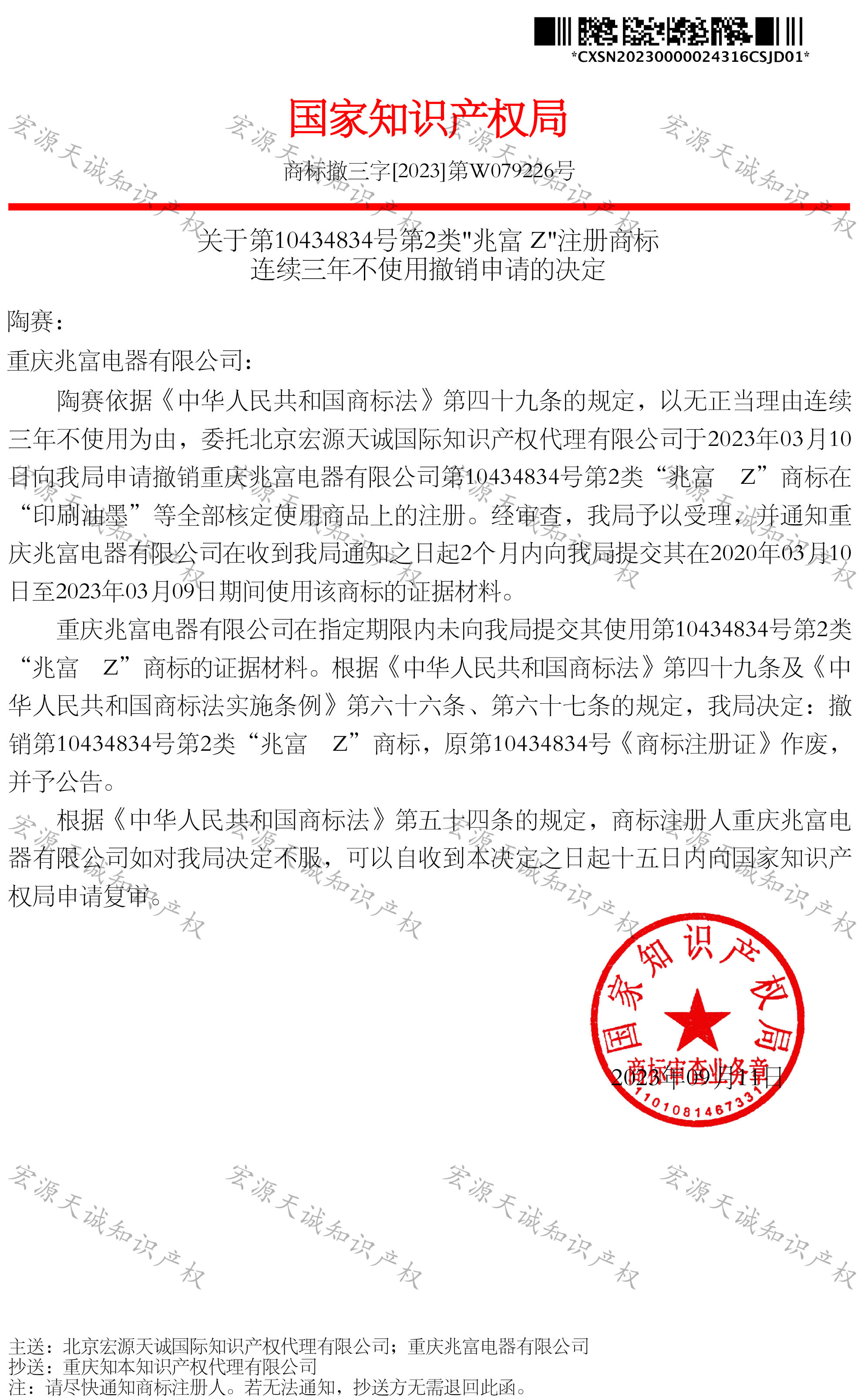 宏源天诚代理“兆富Z”商标提撤三成功